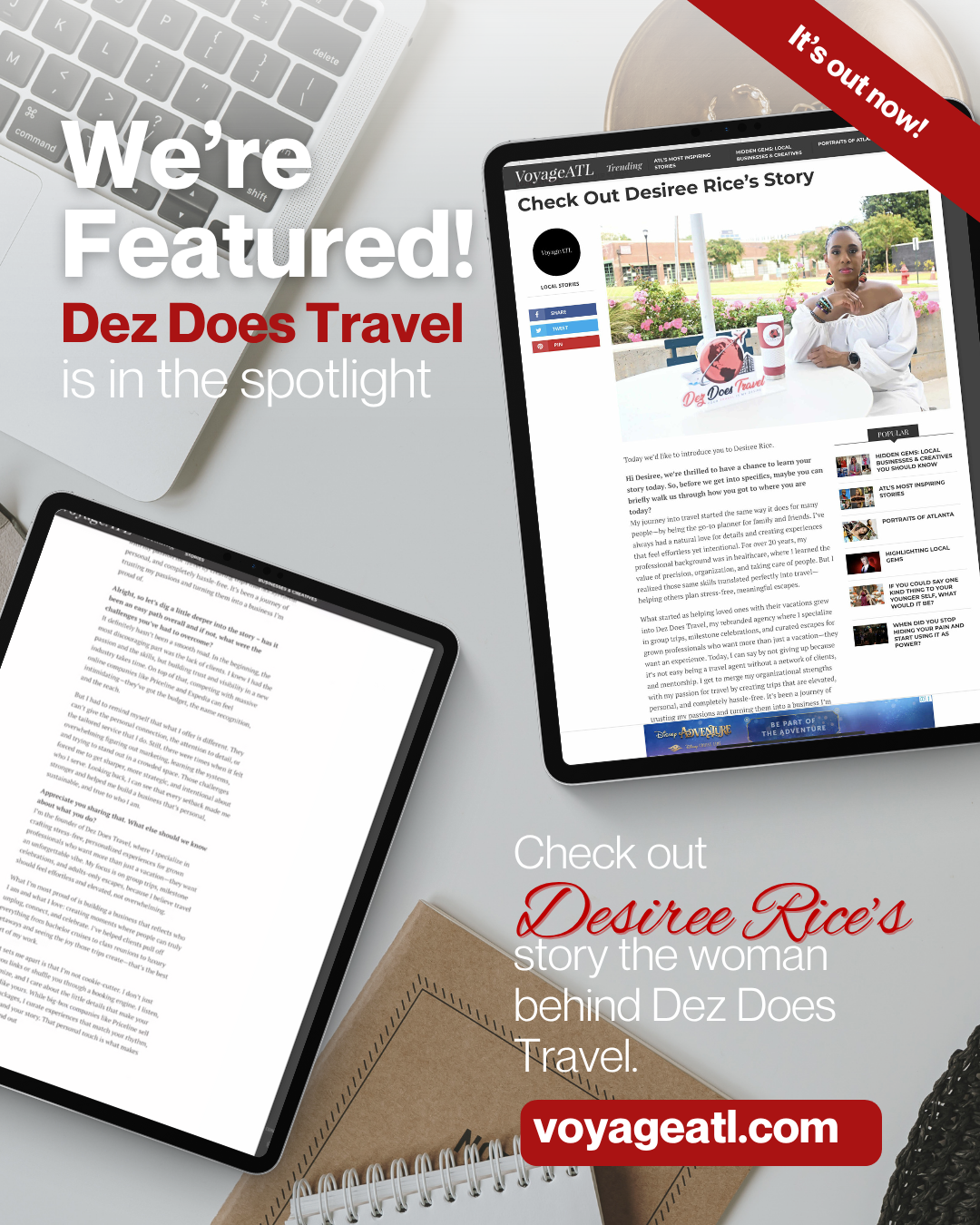 Desiree Rice, founder of Dez Does Travel, was recently featured in VoyageATL, where she shared her inspiring journey from healthcare to becoming a trusted travel expert. In the interview, she opens up about the challenges, wins, and passion behind building a travel brand designed to create curated, stress-free experiences for grown professionals.